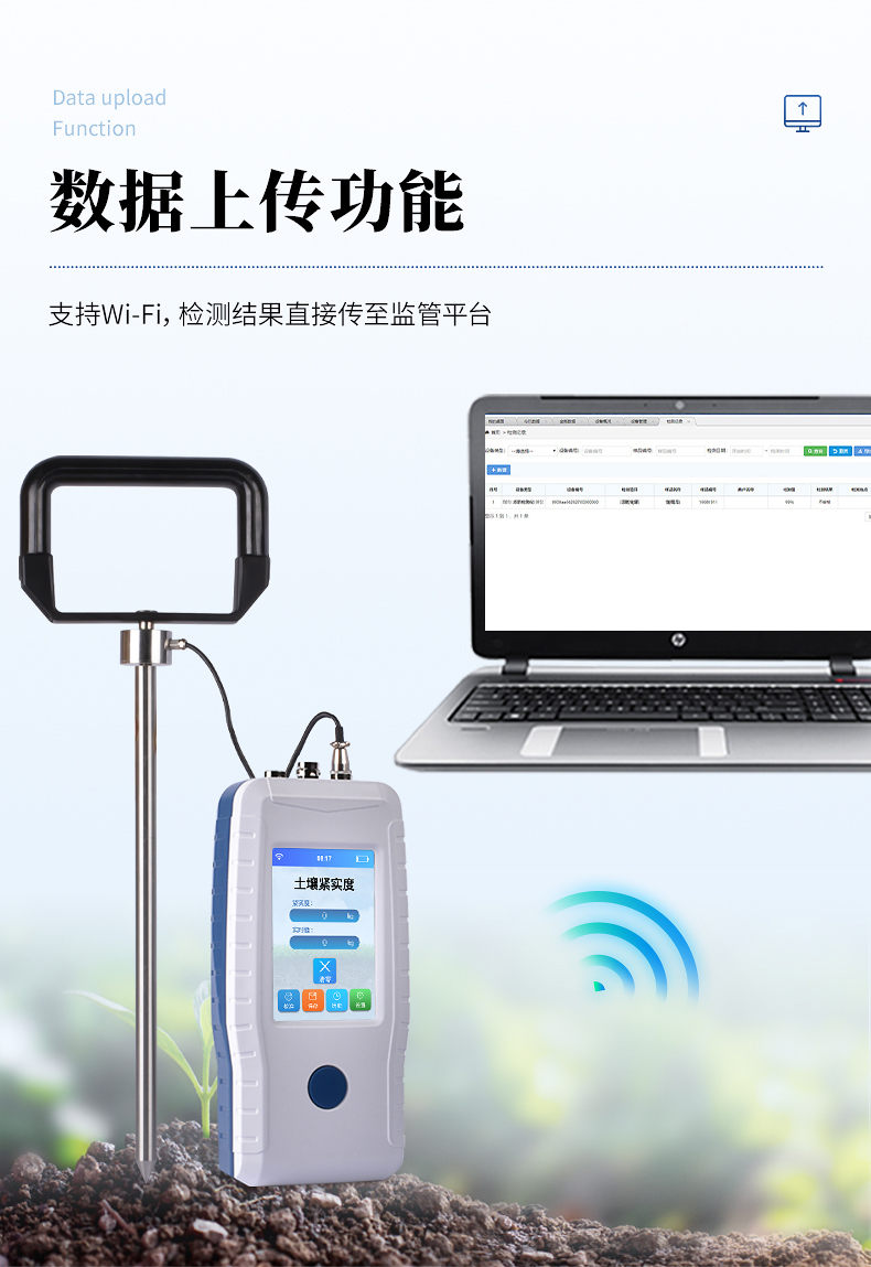 土壤緊實度由土壤抗剪力、壓縮力和摩擦力等構成。是土壤強度的一個合成指標。金屬柱塞或探針壓入土壤時分動載和靜載兩種方法,不同方法的測定值不同,但有聯系。柱塞的形狀有錐體、平頭、圓球及楔子等,這些對測定值也有影響。對同一種方法的測定值,主要決定于土壤質地、容重和含水量。其中含水量的影響最大。土壤緊實度可預測土壤承載量、耕性和根系伸展的阻力。土壤緊實度的大小可影響作物根系的穿孔和生長,是一個重要的土壤物理特性指標,用于評價土壤耕性。緊實的土壤可阻止水分的入滲,降低化肥的利用率,影響植物根系生長,導致作物減產。