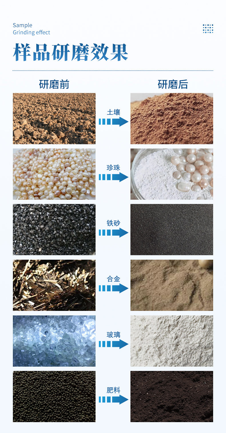 6.研磨罐材質:瑪瑙、陶瓷、聚四氟乙烯、氧化鋯、聚氨酯、不銹鋼、尼龍、碳化鎢、硬質合金等可選(常用瑪瑙、氧化鋯研磨罐)